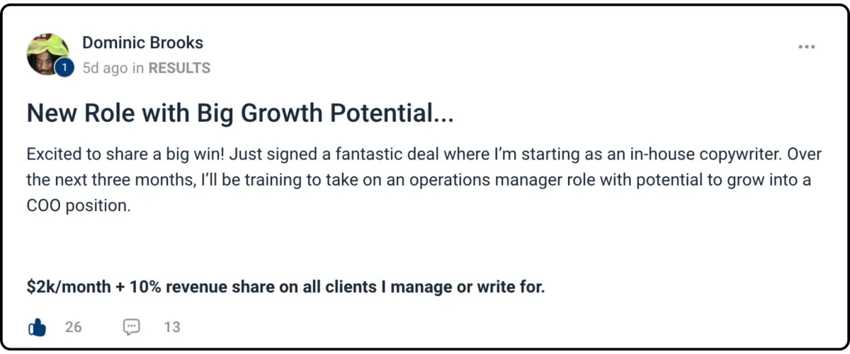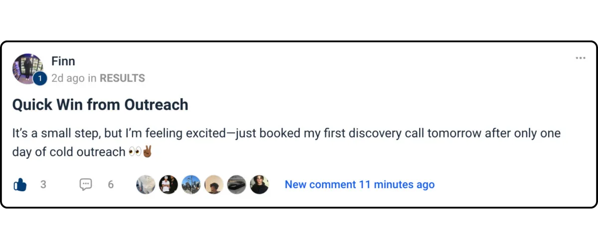 "CC’s outreach formula helped me land my first client—and two more in just two months! Now I’m working smarter, not harder. Life-changing." - Alex R., Copywriter